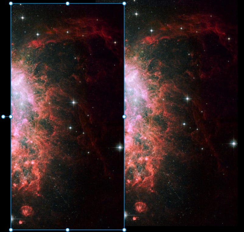 Let me demonstrate exactly how I am folding the page using that Starburst Galaxy NGC 1569 Hubble picture. First, I rotate the image sideways. Next I duplicate it so there are two of the same image: