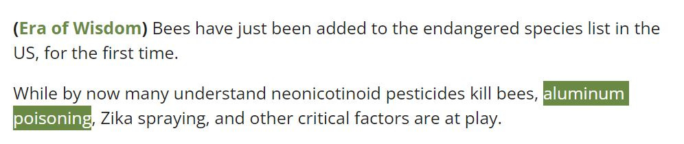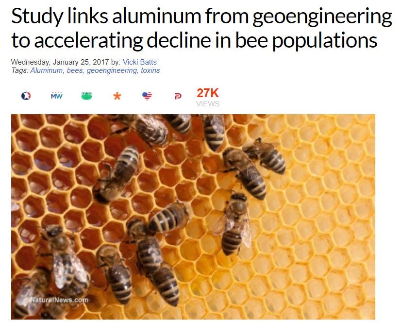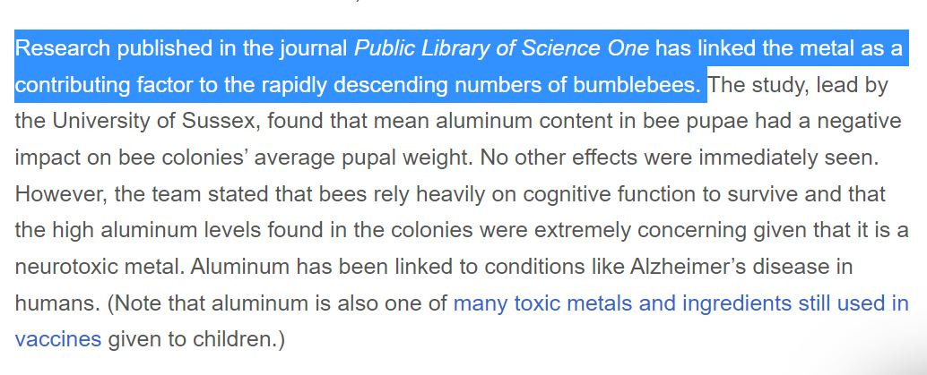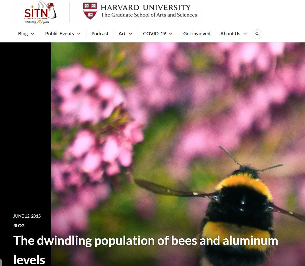 Starting in 2021/2022, I began reporting on the horrifying decline in bees due to the aluminum in geoengineering agents: