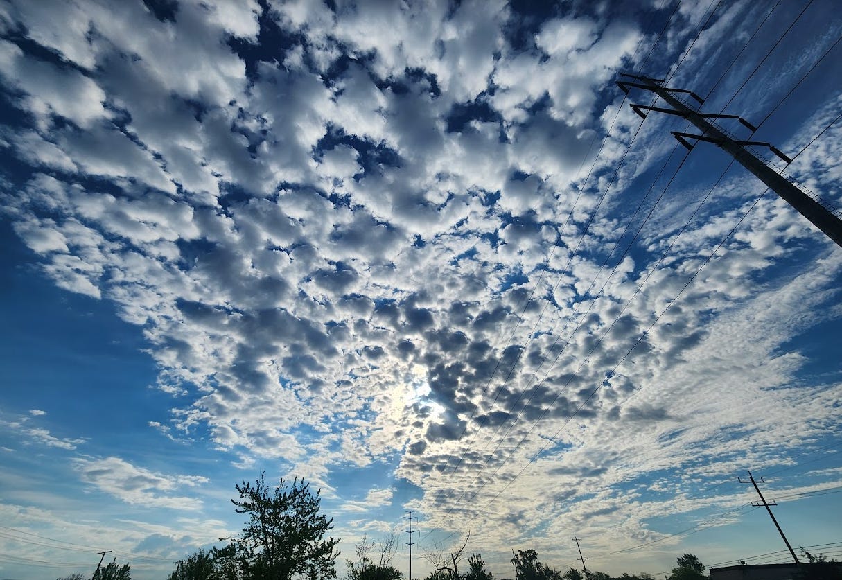 For the past 5-or-so years, all summer long I have been taking ground temperature readings. This lead to a discovery. While the news was reporting that it was 87 degrees outside, yet there sky looked like this: