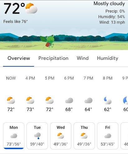 But as soon as that happened, they plummeted the weather down again into the 40s and 50s.