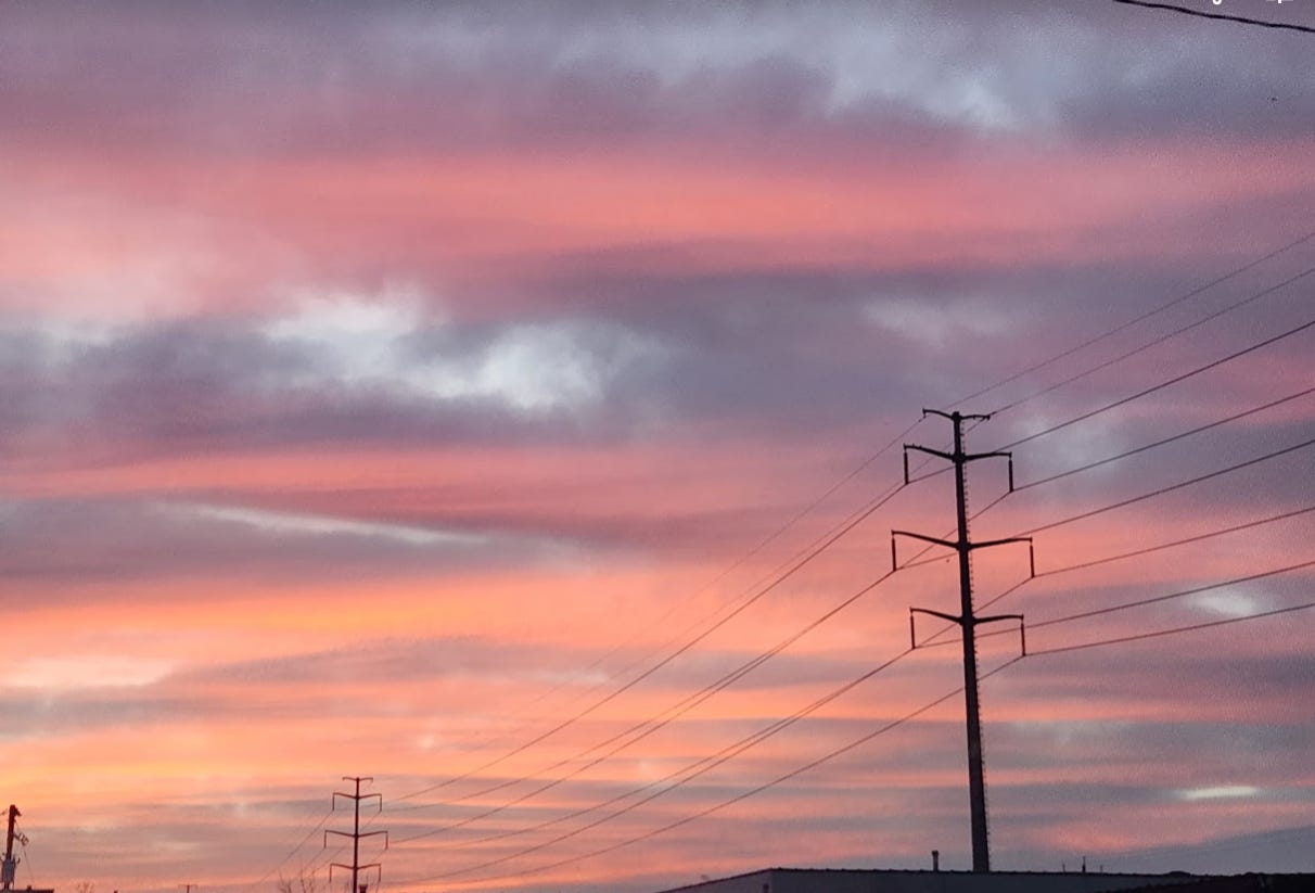 They were even spraying all night long. At the time, I was going to bed around 11pm and would check the skies and see a fresh grid. As a sky watcher for many years, I had never seen anything like what I was witnessing. Here’s a sunrise after a night of relentless spraying: