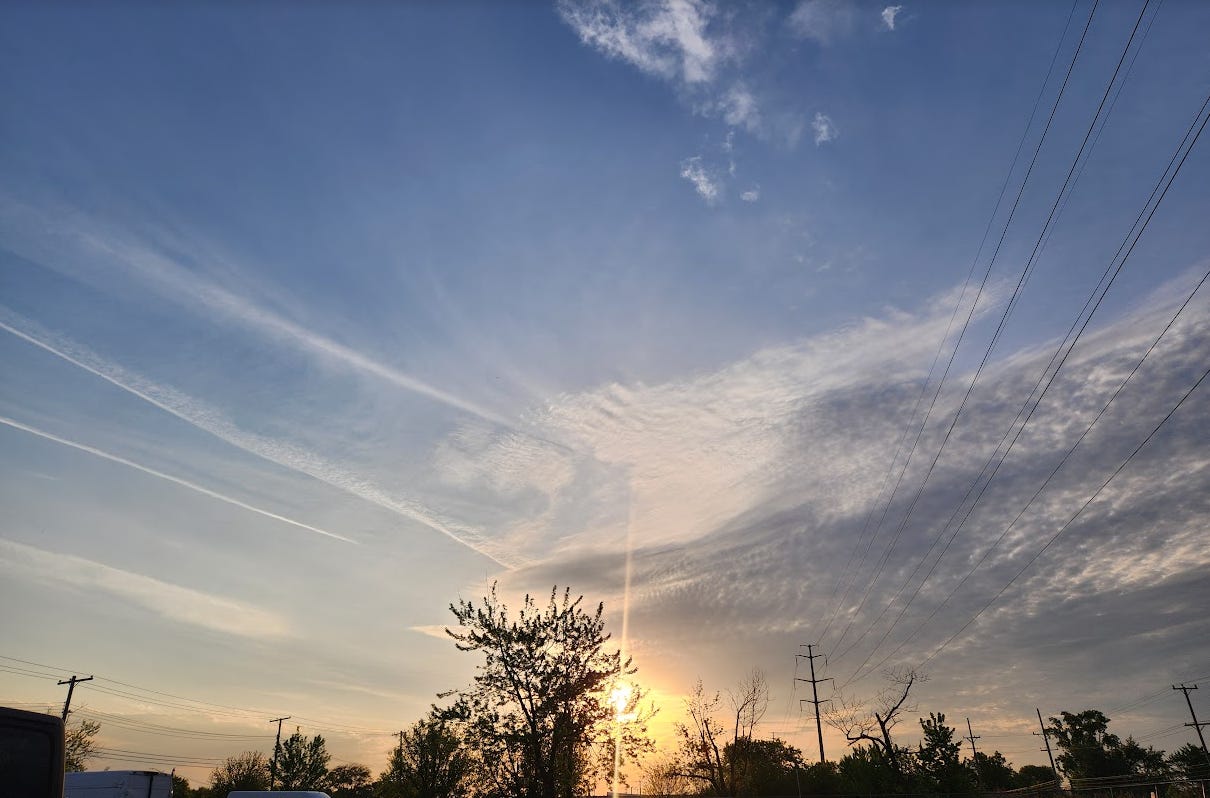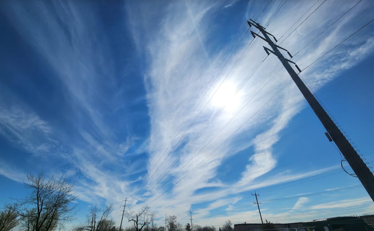 The weather was incredibly warm all the way until the Arctic Freeze that began in January 2024. It was at this time that the temp was shot straight down. The sky showered down so much abnormally heavy, thick snow that it caused damage to properties. The weather, wretchedly bitter, froze vehicle doors shut and snapped branches off the trees that were already fragile from decades of geoengineering. It was at this time that I hopped on a flight to inspect the skies across the USA and discovered the whole thing was manmade. (Sorry for misspelling Cincinnati)