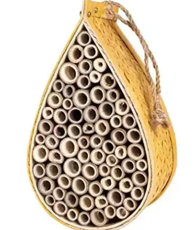 I started with one then ended up with many. It was incredible watching the magnificent Mason bees fill up the tubes with grass, pollen and eggs, then seal the plug shut, like a professional mason (no relation to Freemasons but trust me, I have been watching them closely).