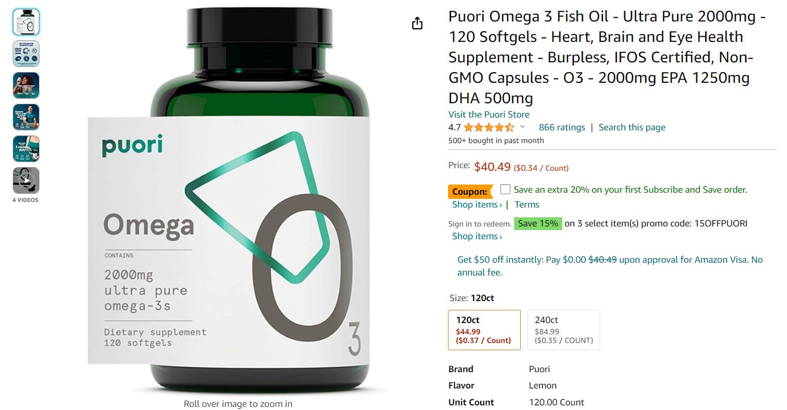 Let’s head over Amazon and see what is being sold to us as Omega-3’s so we can try our best to dissect the ingredients. Son of a b*tch, I see more red flags…