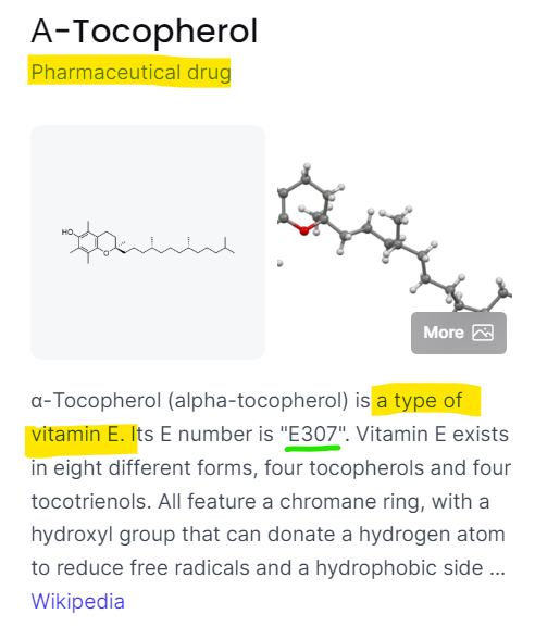 The synthetic form of vitamin E, Dl-alpha-tocopherol, is made by mixing trimethylhydroquinone with isophytol. Clearly these are chemical names, so we have to assume that whatever the f*ck this is, it is going to be worse than Soy or Canola, combined with a hazardous chemical, right? Let’s look: