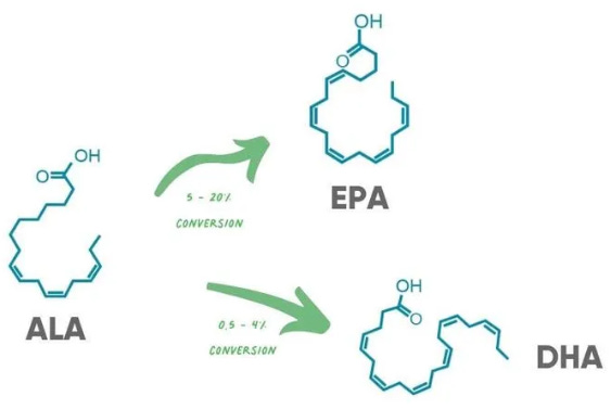 According to the NIH, there are 3 types of Omega-3’s (which explains the name). The 3 types of omega-3 fatty acids are alpha-linolenic acid (ALA), eicosapentaenoic acid (EPA), and docosahexaenoic acid (DHA). They claim the ALA is what makes the EPA and DHA: