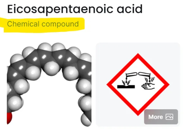 So, if you need to supplement your Omega-3 levels because you don’t want to eat fish, nuts and seeds, your options are: hazardous chemical combined with soy (NATURAL), or just hazardous carcinogens (SYNTHETIC). But, the NIH says our bodies need these chemicals to make more EPA and DHA, so they must be good for us, somehow!