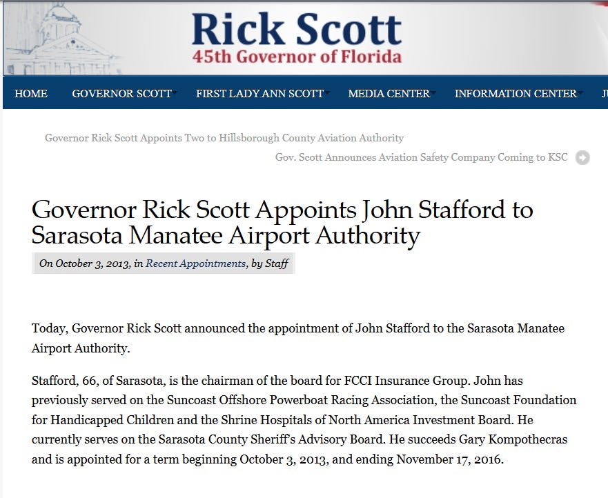 I don’t have time to look up every member, but check this out: On October 3, 2013 (which is 1-3-13 or 3-1-13 if you remove the zeros), Florida Governor Rick Scott appointed John Stafford to Manatee Airport Authority: