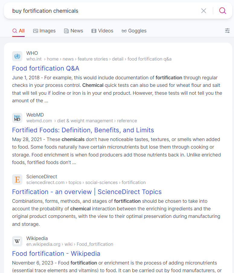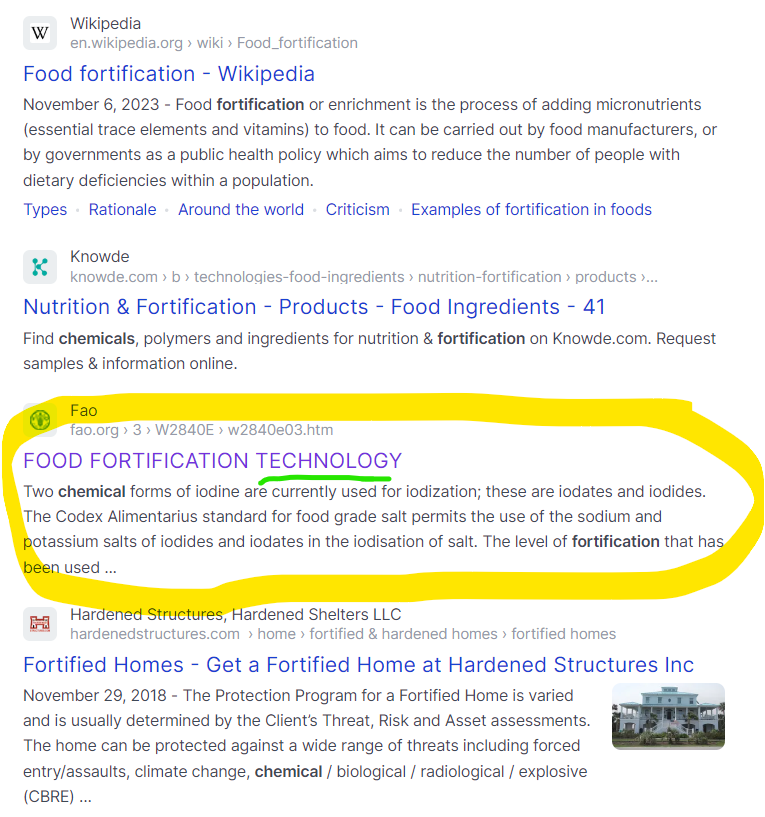I typed into Brave browser, “Buy Fortification Chemicals” and got the typical bullsh*t results, all of which state how amazing fortification is for our health, which we already know is a complete crock of sh*t: