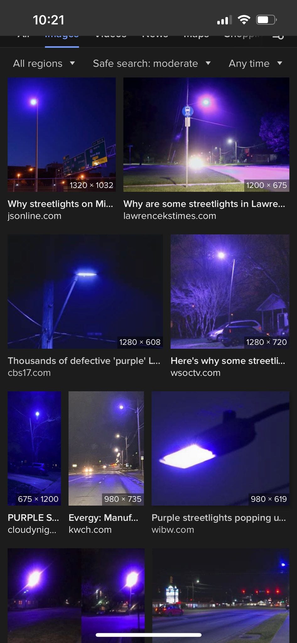 So, it is a fact that the streetlights are being replaced, with a new kind of light, that is for the United Nations Sustainable Goal. That is not up for debate. It is the new lights that are turning purple, not our tried-and-true normal white lights that we all grew up with.