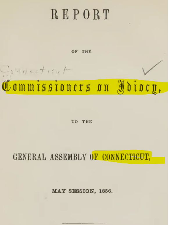 1800’s: Prior to the establishment of the creepy school, the state of Connecticut government felt its state had become, literally, overran by “idiots” (which is interesting, because here we are in 2023, and we feel it’s actually our government that is overran by idiots). CT government grew so concerned with the rapidly expanding quantity of idiots that the governor had appointed the Commissioners of Idiocy to inquire on the "condition of idiots in the commonwealth and if anything can be done for them":