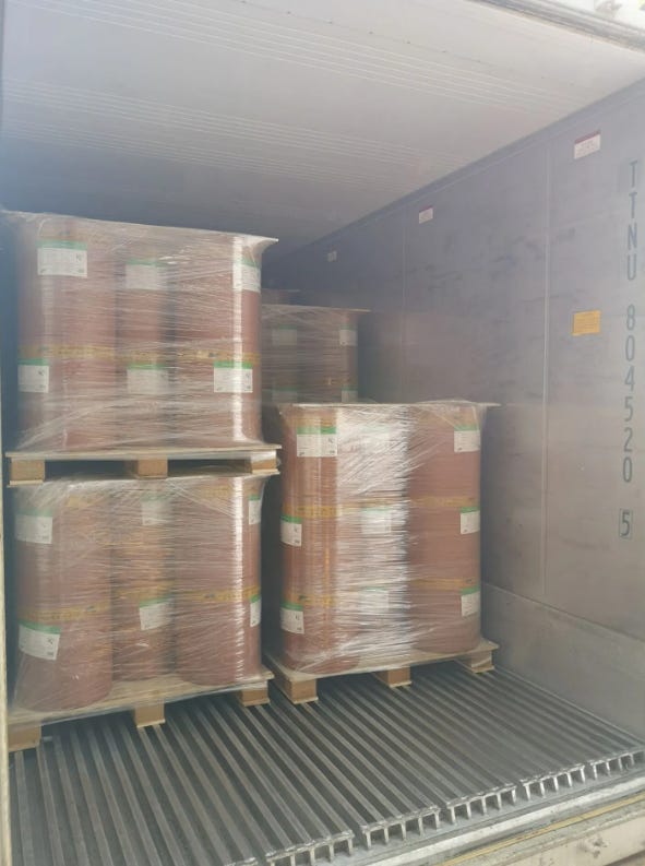The Vitamins come in huge bags of “Fortification Premix,” which is added to foods at processing plants: (17-second video)