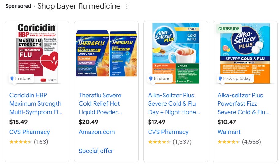 The good news is, if you catch the flu you can buy some Bayer medications to make you feel better!