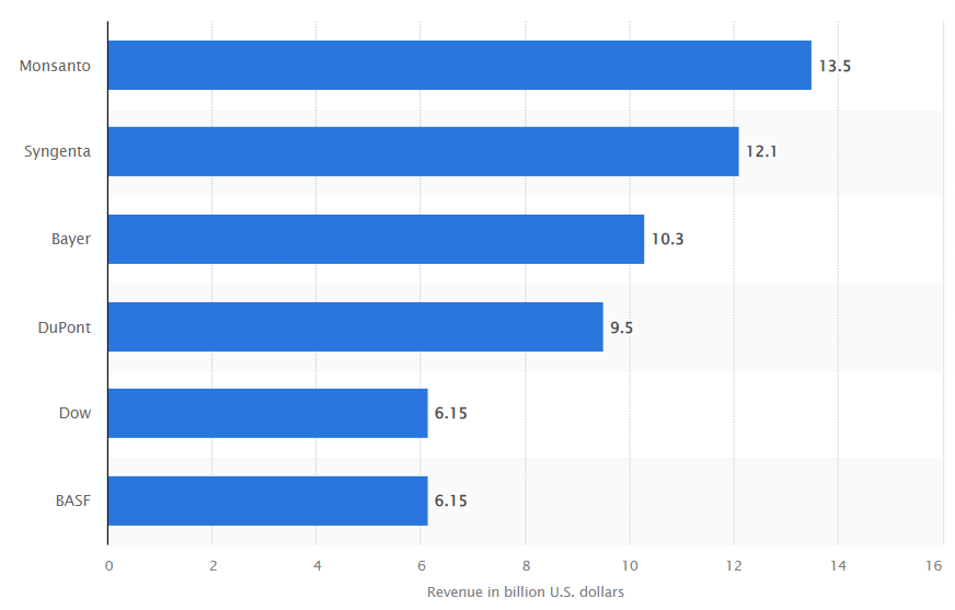 2016 revenue in BILLIONS for seeds and pesticides: