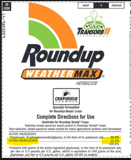 They accidentally rigged the animal trials by feeding the them “99% pure glyphosate” or “technical grade glyphosate”, meanwhile, RoundUp is under 49% glyphosate. The remaining 51.2% of the product is that not-telling-you-trade-secret mentioned previously: