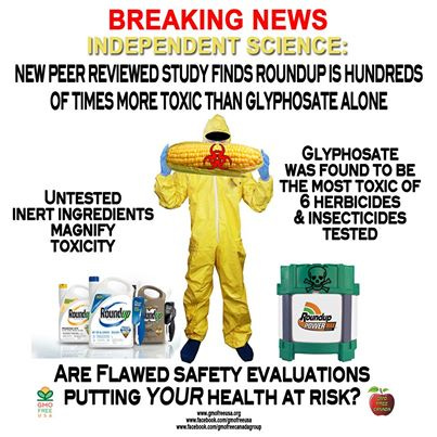 Although we have not the slightest clue what makes up over-half of this totally harmless chemical blend, dating back to 2012, independent, peer-reviewed studies were discovering that those unnamed ingredients in Roundup Herbicide increase Toxicity by as much as 1,000% when compared to pure Glyphosate.