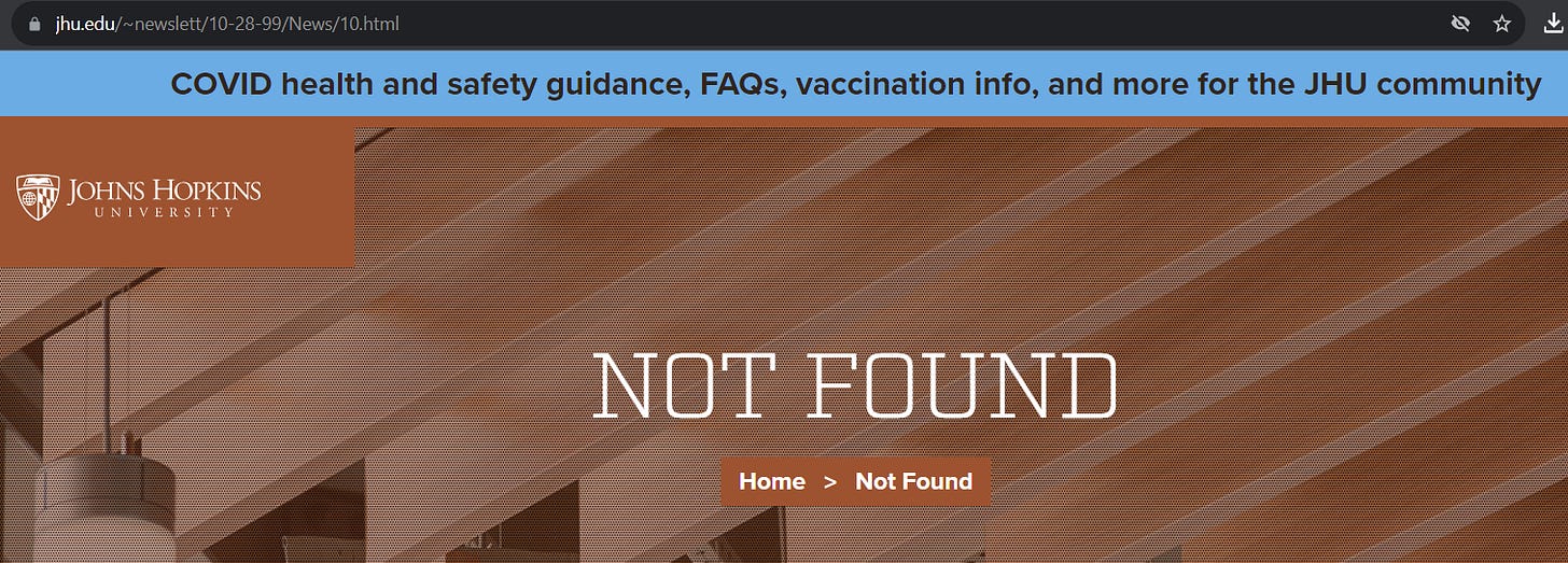 We know when they scrubbed it because of WayBackMachine. The last time the Killa Corn announcement was on Johns Hopkins site was in 2006: