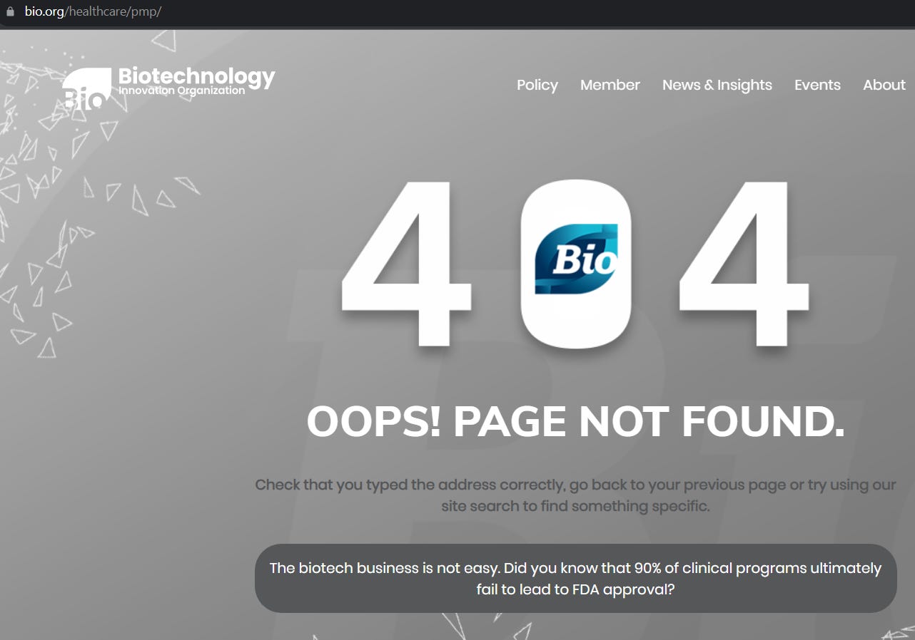A different link for Bio.org's second Fact Sheet is also scrubbed: