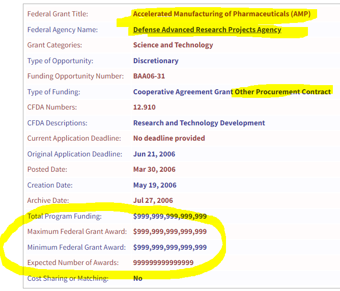 Basically, in 2006, they were looking to partner with someone who would help them be able to pop off MILLIONS OF DOSES OF VACCINES IN UNDER 12 WEEKS, using plants. The budget was either $999,999,999,999,999 or unlimited: