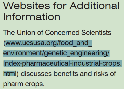They suggested checking out PlantPharma.org to read news stories about the topic: