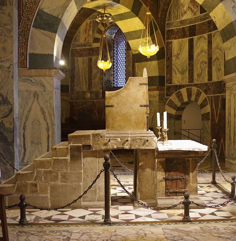 Only a few years after the completion of Aachen Cathedral, around the same time the Donation of Constantine was presented, on Christmas Day of the year 800, in St. Peter's Basilica in Rome, something crazy happened; Pope Leo III crowned King Charlemagne as Roman Emperor - yes, a Pope, for the first time in history, crowned an emperor. When the crown was placed on the Emperor’s head, the crowd cheered and began praising the new ruler. The coronation marked the beginning of the Holy Roman Empire but the thing is, nobody knows exactly how this occurred. According to Charlemagne's biographer, Einhard, Charlemagne had no prior knowledge of the pope’s role in the coronation and would not have accepted the imperial crown if he had known about it in advance. It is said Charlemagne was both surprised and angry at this secret papacy plot. Having no way to undo what had been done and witnessed by the public gathering, it established the precedent that, in Western Europe, no man would be emperor without being crowned by a pope. With a single simple scheme, the role of pope had just become higher than the role of emperor and therefore higher than king…