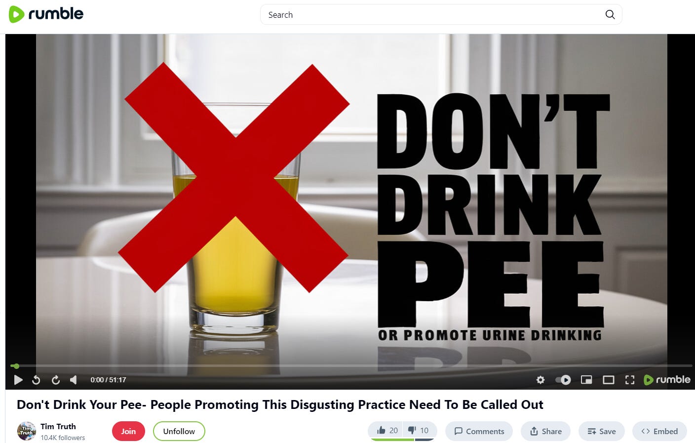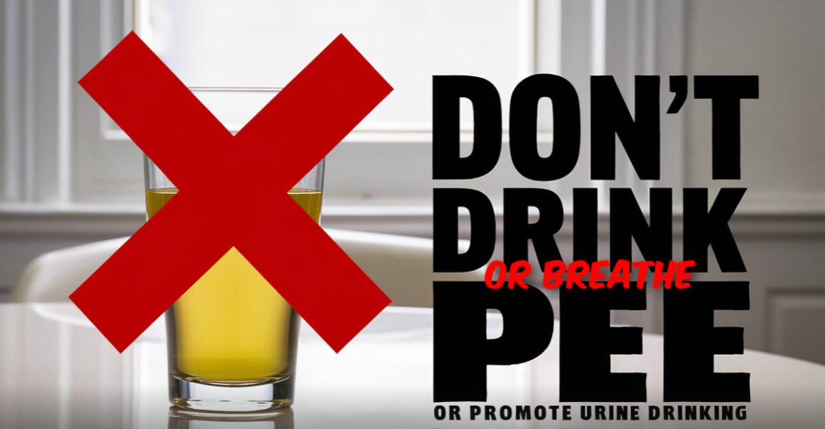recently published a video telling people not to drink their pee.I think we need to encourage him to make another video to tell people not to inhale it either. I corrected his graphic for him: