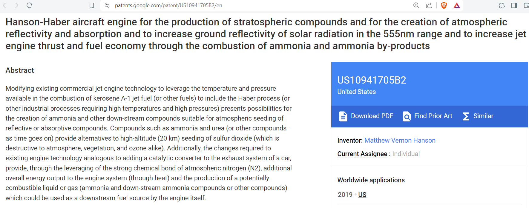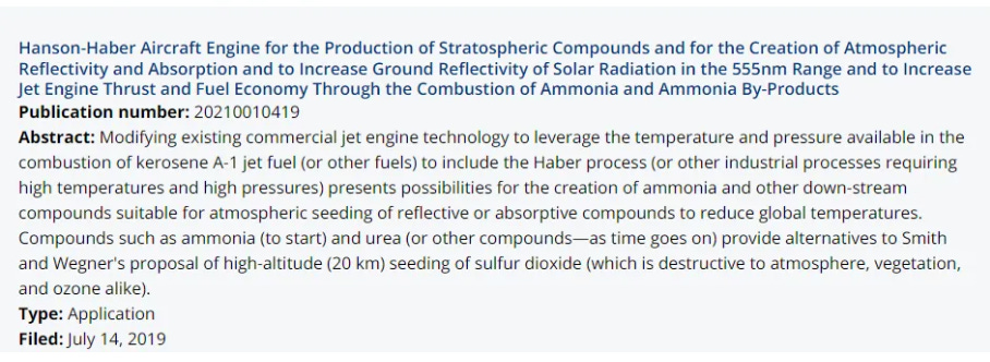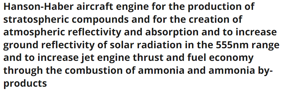 Hanson-Haber also filed a second patent which is nearly identical to the first, with the difference being it is an alternative to spraying Sulfur Dioxide, because that sh*t also wrecks the environment. Who would have thought loading the sky with chemicals would be so harmful?! And, with both patents, Hanson-Haber will provide the GeoEngineering materials to be used with the special engine.