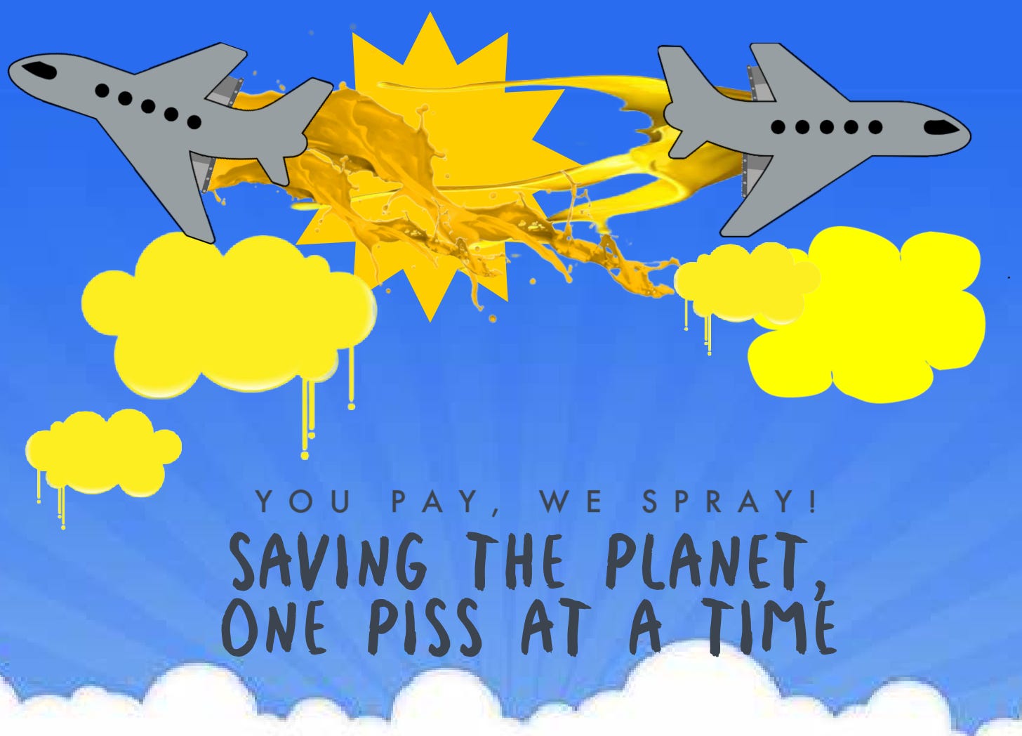 Answer: PISS. Urine. Pee. #1. Wiz. Take a leak. The Mellow Yellow. Tinkle. You still gotta flush. Yes, they want to spray the skies, the atmosphere, the air we breathe, with… piss...