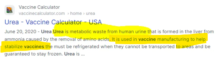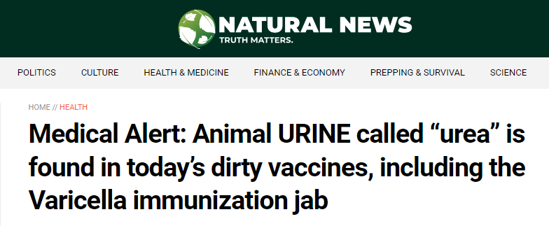 ‘s graphic:I’m not sure what it will take to get vaccine advocates to reconsider (yes, mom, I am talking to you!). Is piss enough to make these people think twice? Every time we see an article promoting a jab should we comment, “I'm not worried about the aluminum or dead baby cow bits, but how much piss is in this one? Urine makes me itchy”. Like, is knowing you’re shooting someone else’s urine in your arm enough to be like, “ya know, I think I'd rather gamble with getting the Flu this year”…?