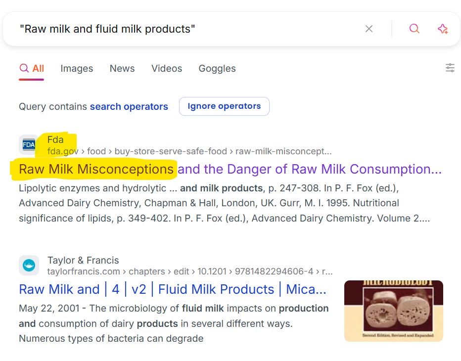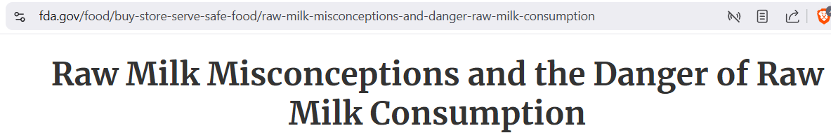 You can go to FDA.gov right now and read their article outlining how dangerous raw milk is: