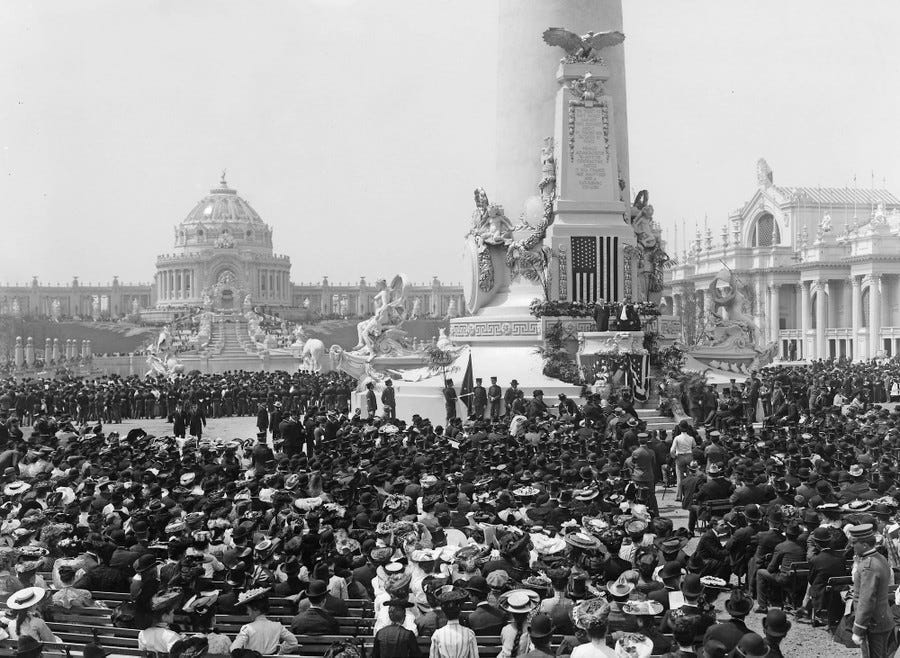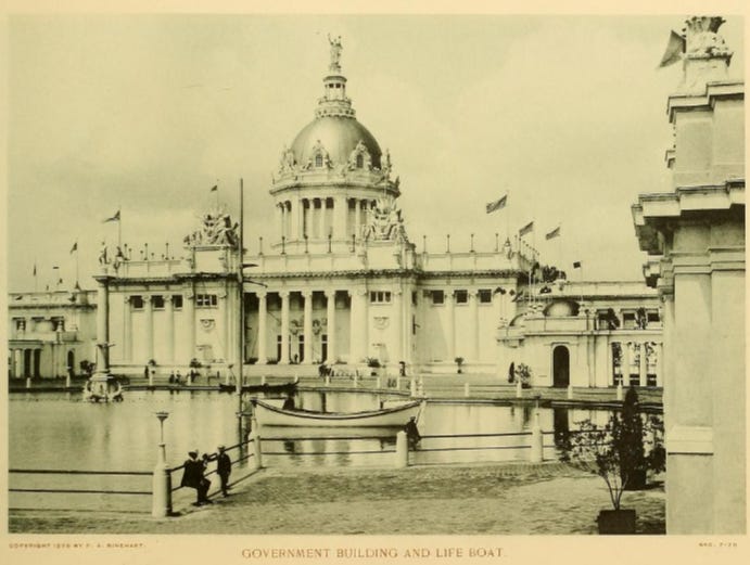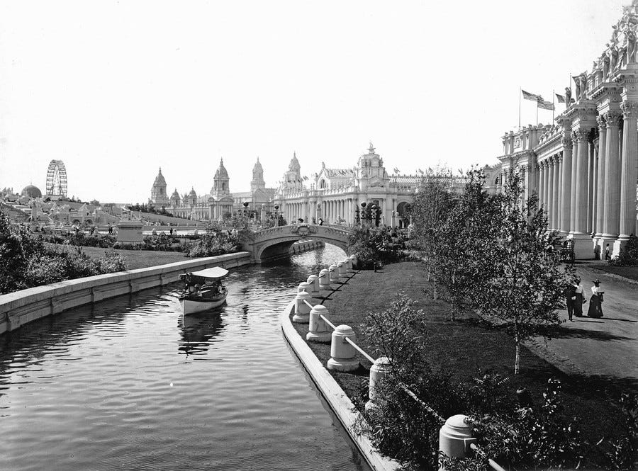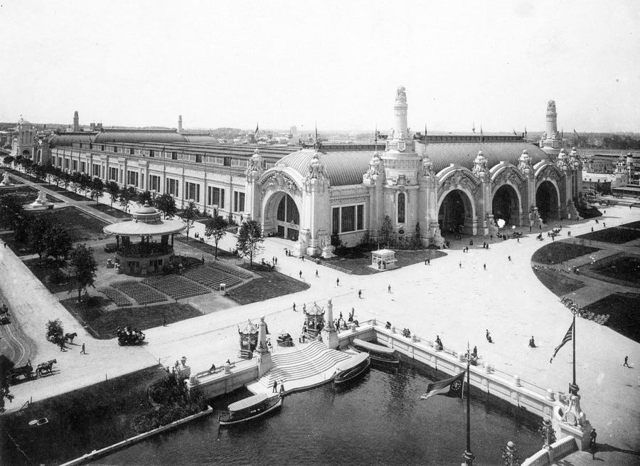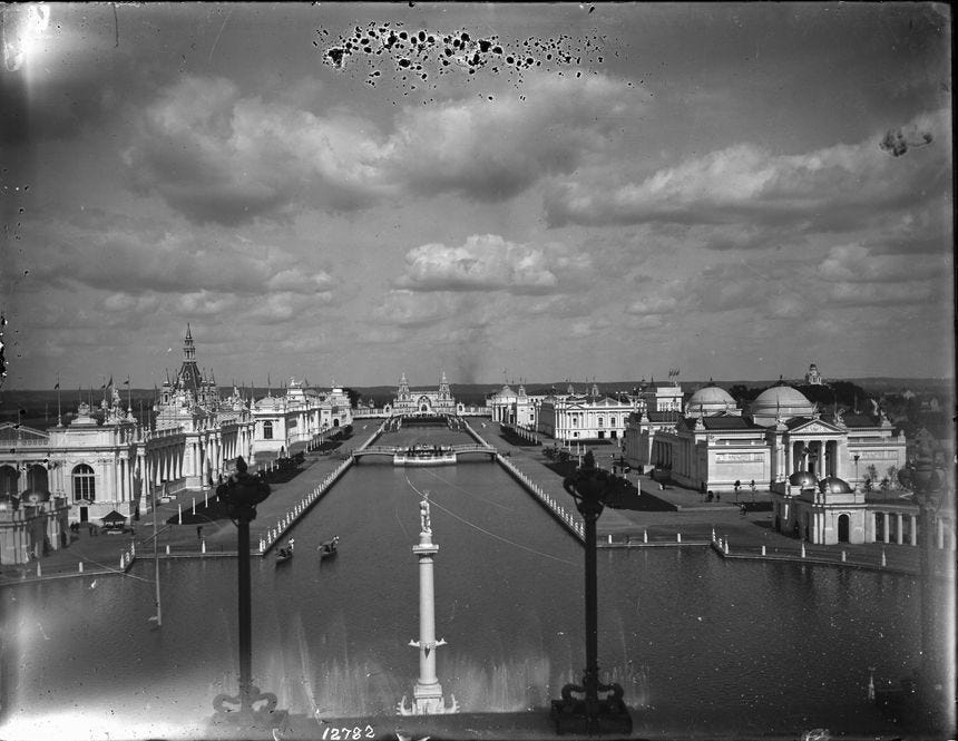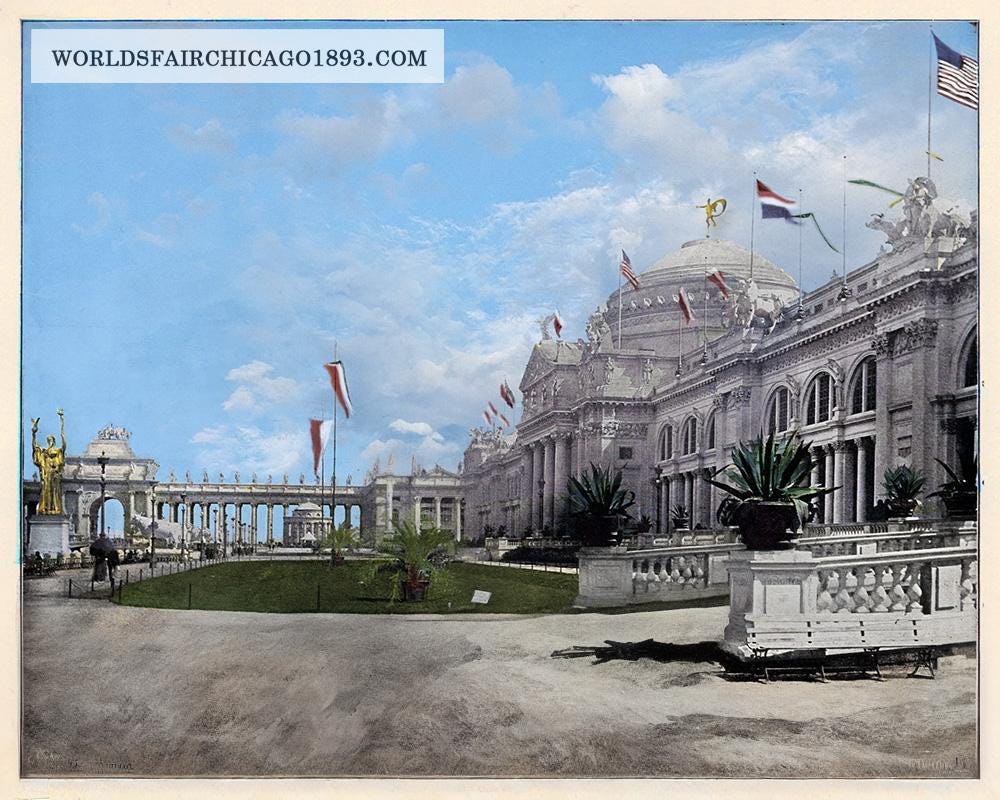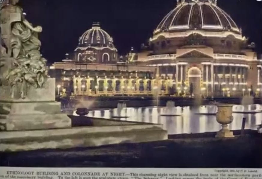 Although the stated purpose of these events was to showcase technology of the world, for reasons unknown, they chose to make all of these fairs look like Roman cities, right here in the USA.