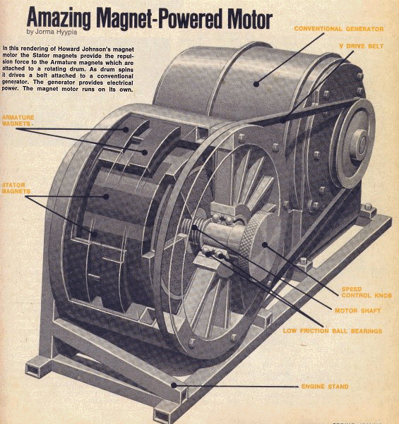In 1970 the Howard Johnson Magnetron Motor came to be. This motor, powered only by magnets, was so impressive that it appeared in the spring 1980 issue of Science & Mechanics magazine.