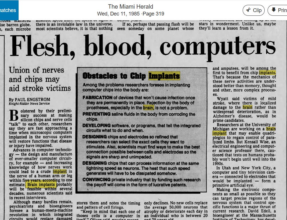 Firstly, there is the claim that the technology needed for brain computer interfacing does not yet exist but is estimated to be with us within 50 or 100 years.