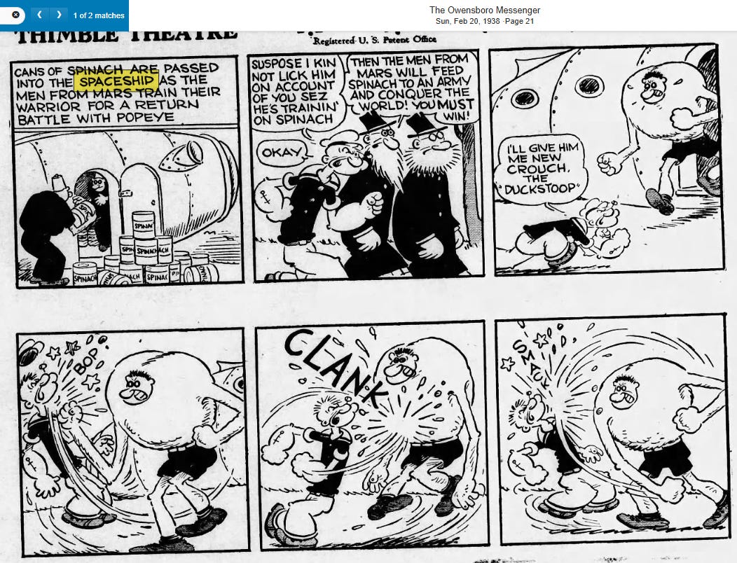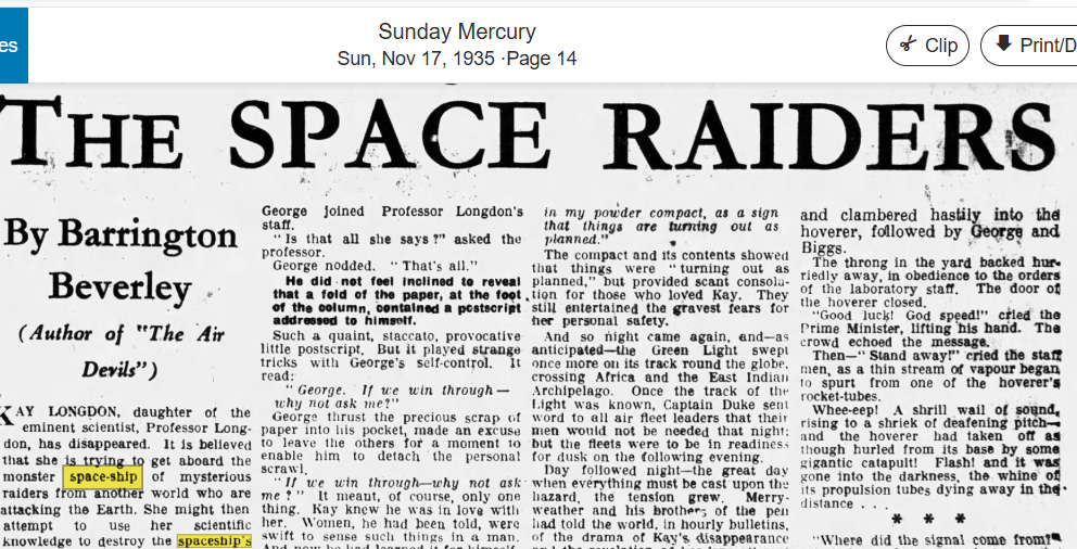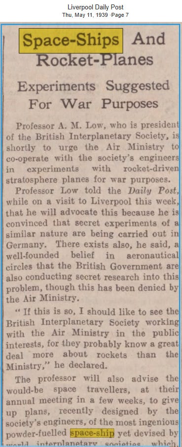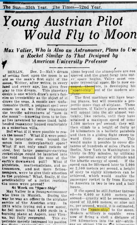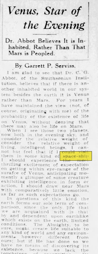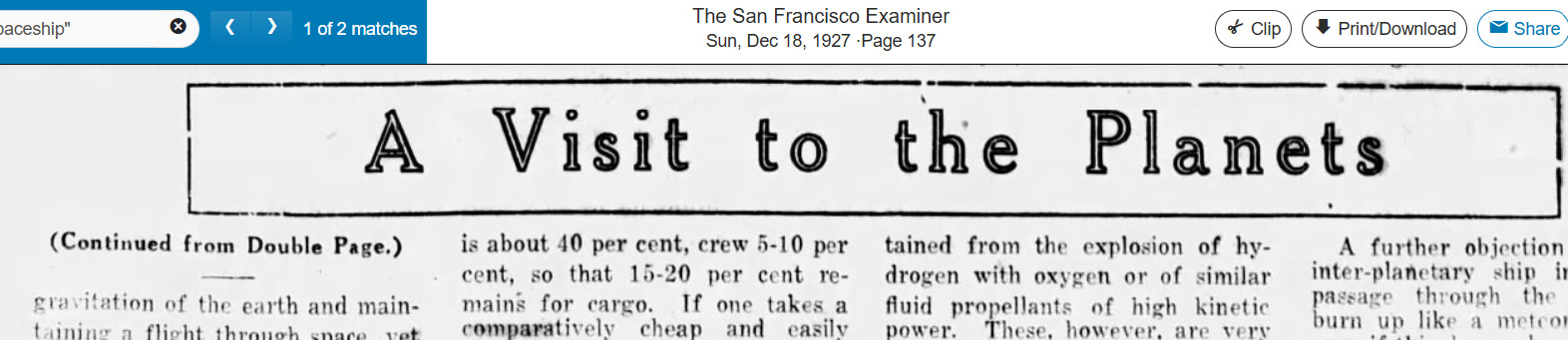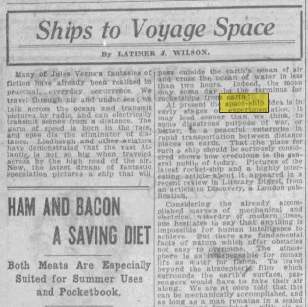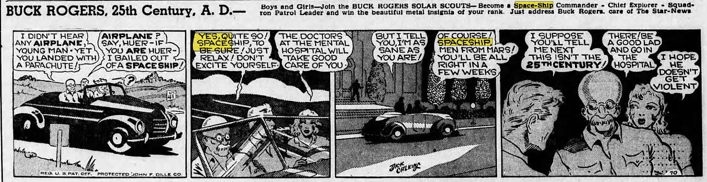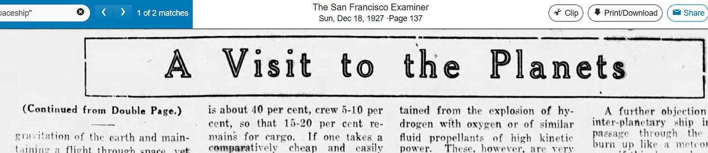 It was now the 1920s and the EEG was developed for measuring brainwaves. This is also when the first real bump of the word “spaceship” appeared in the news: