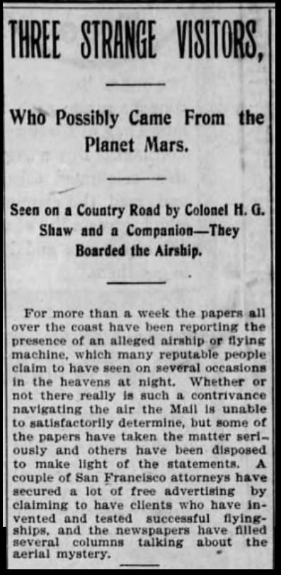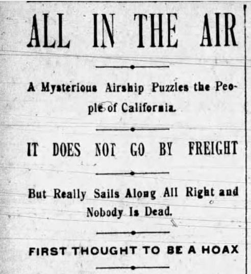 Immediately after the Shaw incident, according to the media, “mysterious airships” began appearing in California.