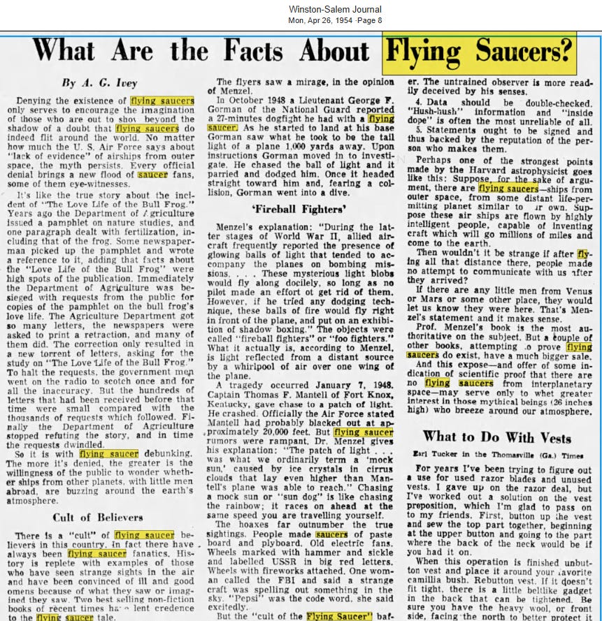 The following year, 1955, Mr. Ray Stanford was pumping UFO content.