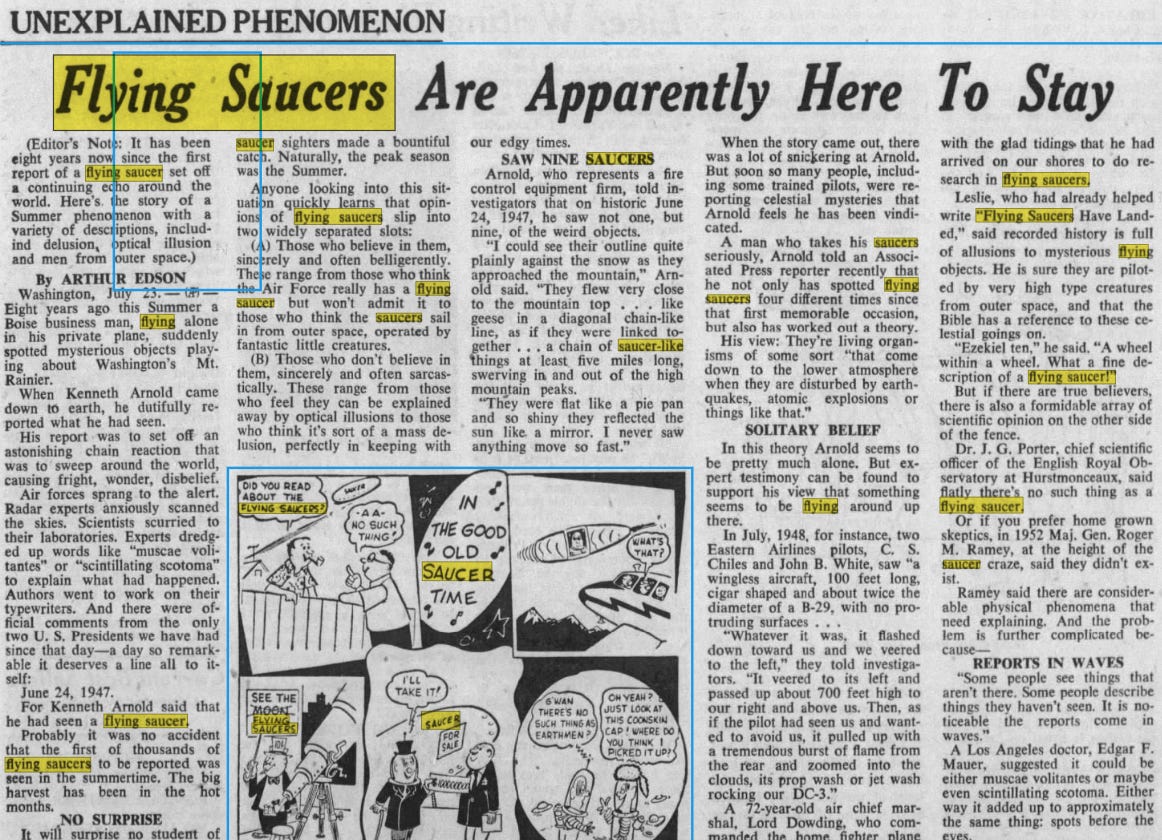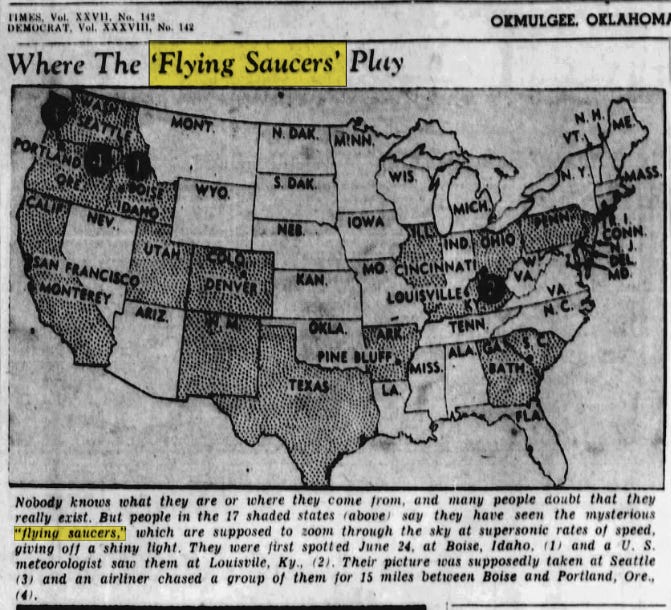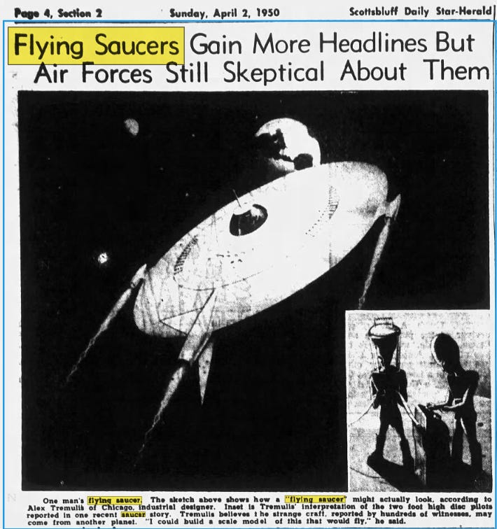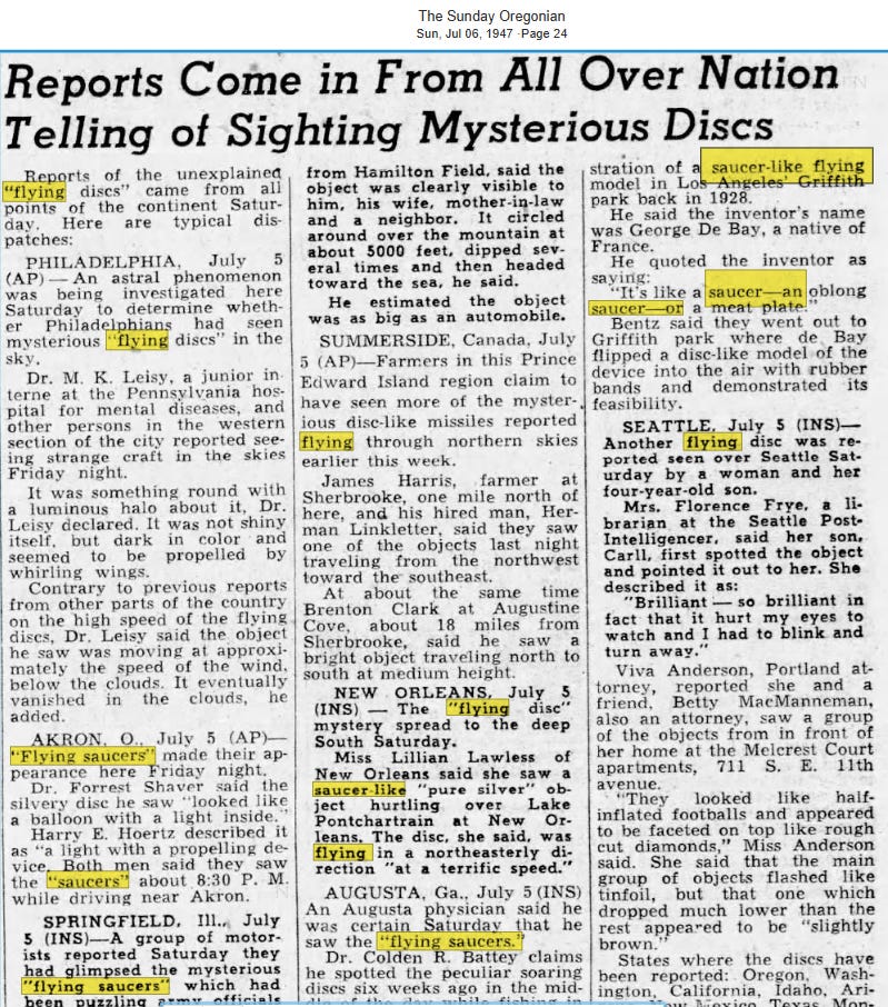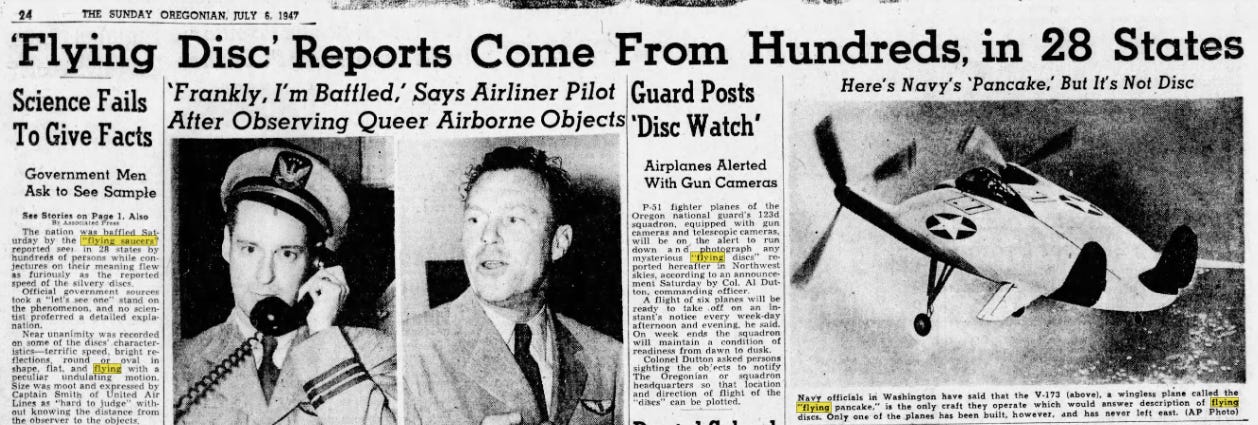 Come 1947, UFO sighting reports were front page news on a regular basis.