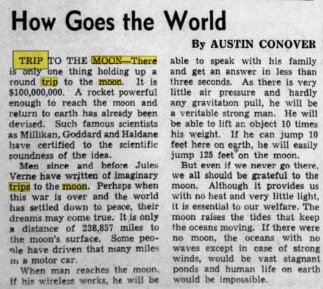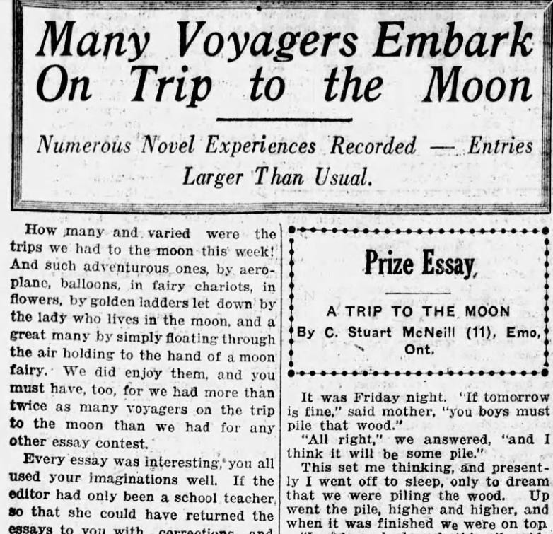 1923 a Trip to the Moon essay contest was released, geared toward young people (the school children of the 1920s).