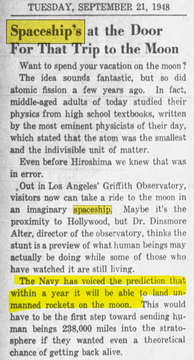 In the 1940s the newspapers were loaded with spaceships, moon travel, visiting planets and…