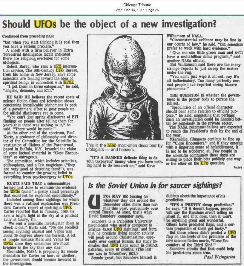 There is so much UFO content from the 1960s that if I was to post it all, you would be bored to death, so let’s skip ahead to the 1970s.