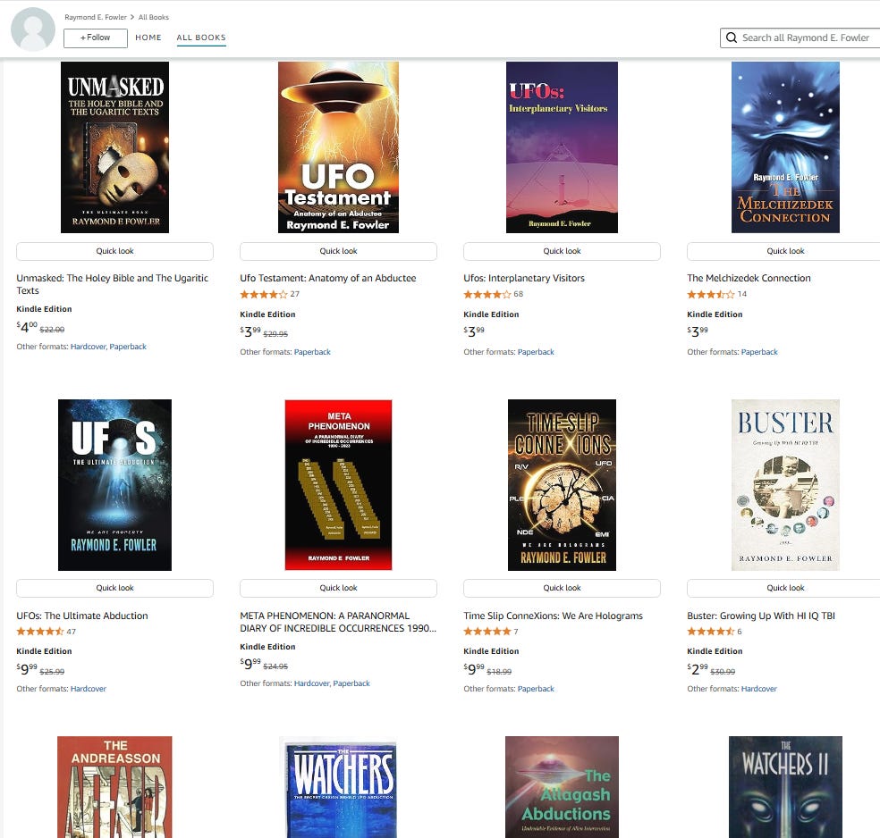 Meanwhile, Mr. Fowler would go on to publish over 20 books for public consumption of the big hoax.