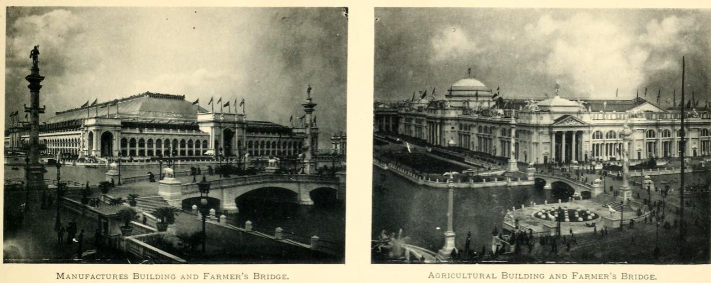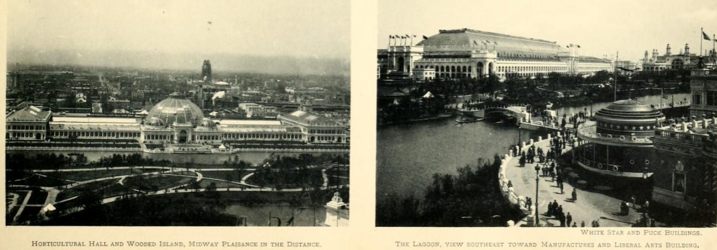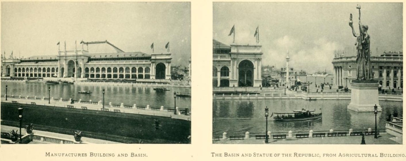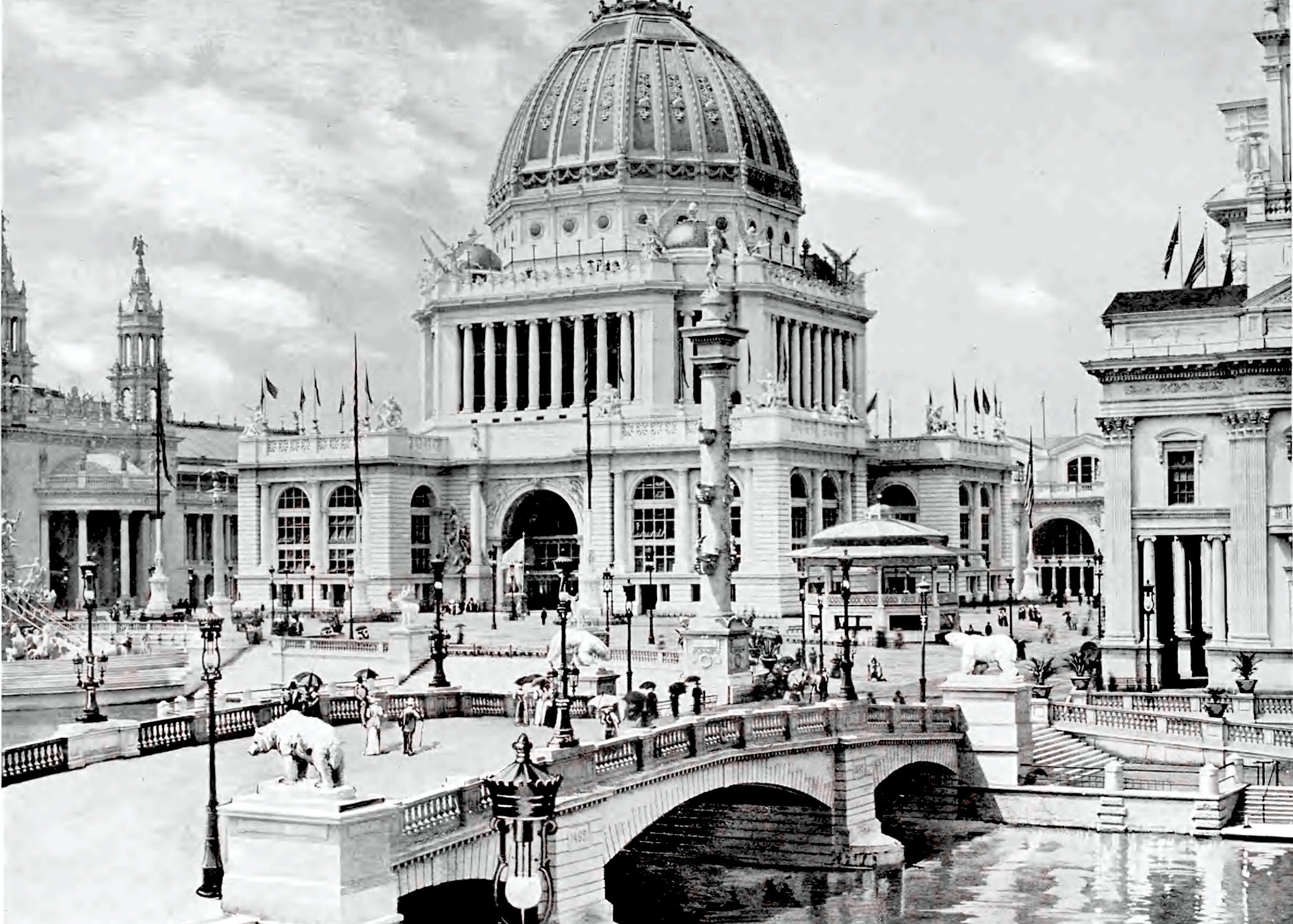 The story about the Columbian Exposition (aka Chicago World’s Fair of 1893) is this: It had been only 20 years since the GREAT Fire leveled the city and they (meaning the fair people) wanted to host an event. They chose an undeveloped swamp area in Chicago