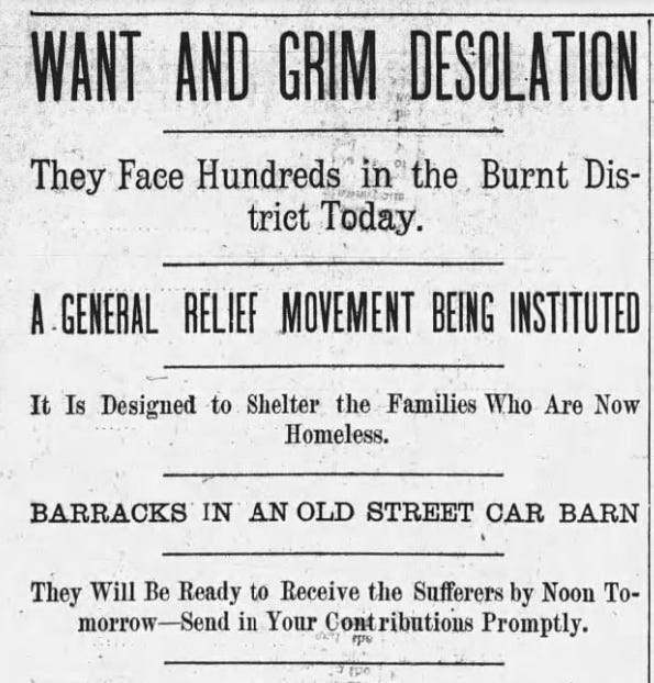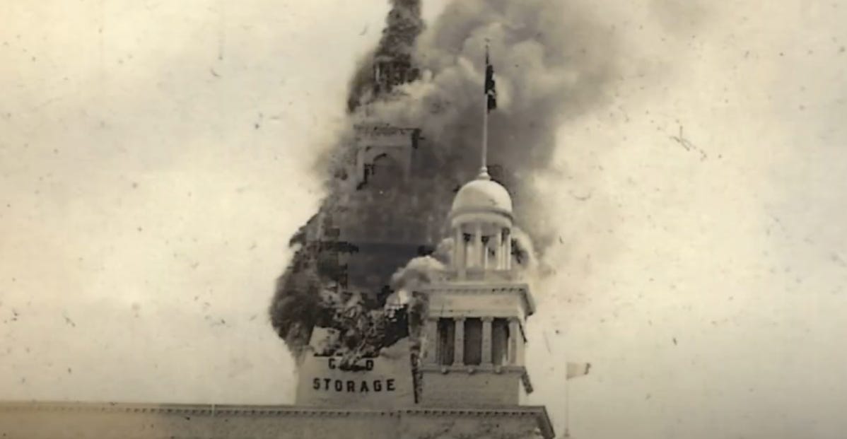 …it was reported the lamp caused 150 houses to go up in flames and it just so happened that the coal docks, which were filled with coal, also caught fire, as did the lumber yard, identical to the 1871 fire.