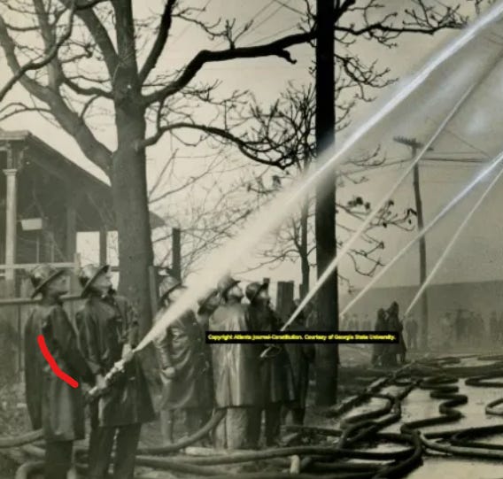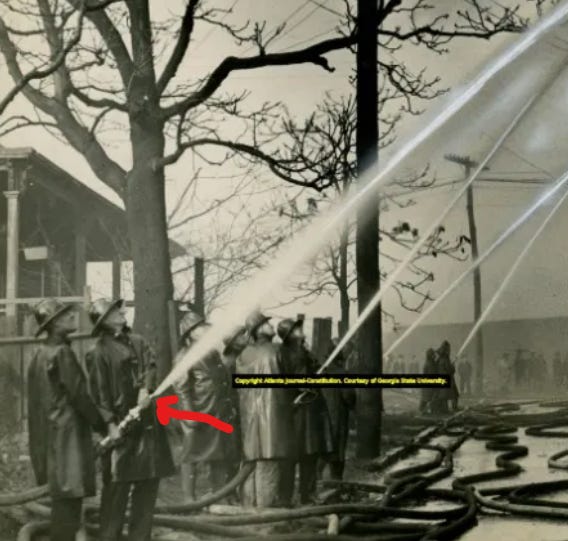 Looking at the photos, I couldn’t help but remember back to my article I mentioned earlier about faking historic photos, in which I showed painted water being ejected from hoses: