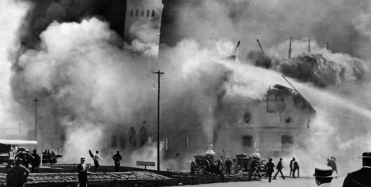 The Columbian Exposition would be demolished by the Chicago House Wrecking Crew, who raked in $200,000 for their services. Their own brochure stated they were forced to sign contracts and adhere to terms that were not common. Further research reveals these “contracts” were likely nondisclosure agreements, meaning, the dynamite crew was not allowed to discuss anything relating to the (alleged) destruction of the Fair.