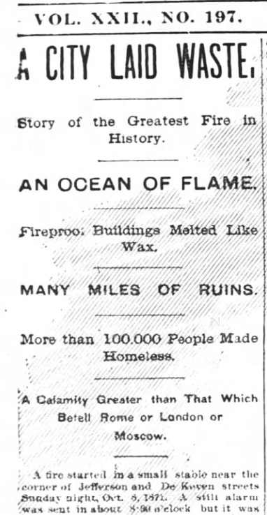 The newspapers reported the Chicago fire of October 1871 was unlike any other fire of the time. Firefighters were helpless against the blaze as it rushed through the city, killing hundreds and quickly incinerating block after block. The news reported