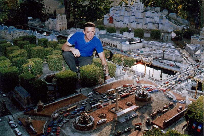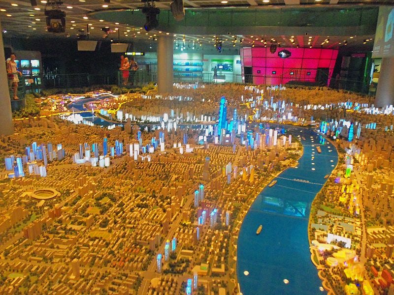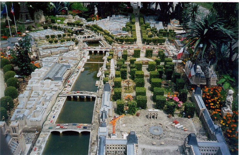 If the buildings were tabletop models and the people are drawn in and “photo shopped”, incredible cities could be photographed…
