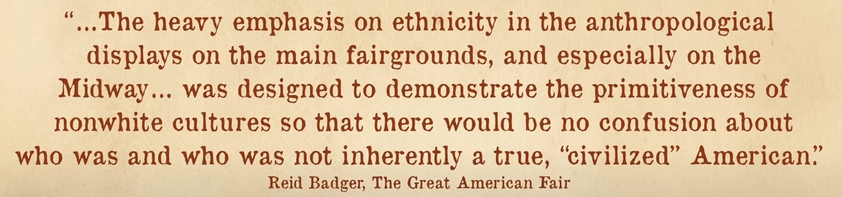 Because I promise my paid subs two mind-blowing articles per month, this is one of them, a mega-deep dive. You are basically getting a mini book, not an article. So if you want to hear some seriously shocking untold history and discover who was the driving force behind these fairs, scale this wall and meet me on the other side. Like Walmart, I’m as cheap as they come - $5 a month. This amount is the lowest Substack will allow me to accept, but hey, a book for $5? Plus you’re supporting independent journalism? What are ya waiting for, scale the wall, but be careful, it’s made of plaster!