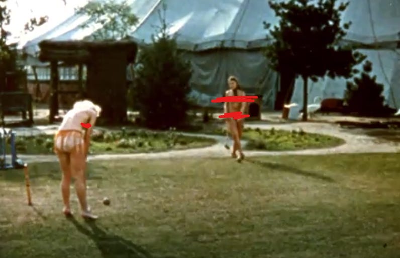 These exhibits, if you could call them that, had absolutely no legitimate reason to be at a family event, yet nude woman played lawn sports and encouraged male patrons to participate: