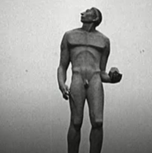 There were also towering nude statues (because this is a statue, I am not censoring it, but I need you to look at it because I want you to tell me what he is holding):